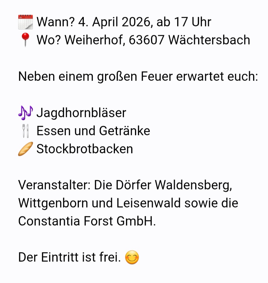 WaldensergemeindeWaldensberg Alte Schule und Kirche Ehemaliger Dorfbrunnen Begrüßung Ortseingang Kleine Parkanlage Waldenser Trachten Bekanntmachungen Die Laienspiele führen an zwei Samstagen ihr Theaterstück auf!14.03.2026 ist ausverkauft.21.03.2026 sind noch Karten zu haben. Osterfeuer am Weiherhof 2. Auflage 2. Waldensberger Hofflohmarktmit Dorfcafé im Dorfgemeinschaftshausam Sonntag 12. April 2026von 11 Uhr bis 16 Uhr Impressum Datenschutz Neues auf der Web-Seite