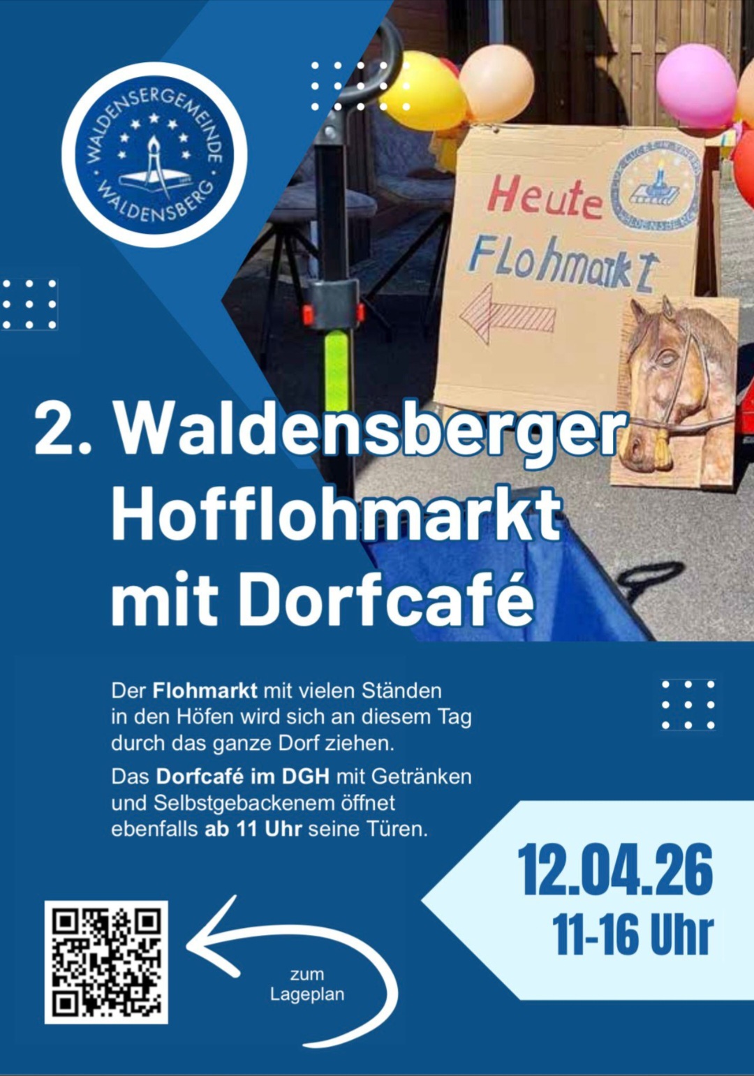 WaldensergemeindeWaldensberg Alte Schule und Kirche Ehemaliger Dorfbrunnen Begrüßung Ortseingang Kleine Parkanlage Waldenser Trachten Bekanntmachungen Osterfeuer am Weiherhof 2. Auflage 2. Waldensberger Hofflohmarktmit Dorfcafé im Dorfgemeinschaftshausam Sonntag 12. April 2026von 11 Uhr bis 16 Uhr Der Lageplandie blauen Punkte markieren die Verkaufsstellen in den einzelnen Höfen(hier anklicken – als PDF öffnen) Impressum Datenschutz Neues auf der Web-Seite
